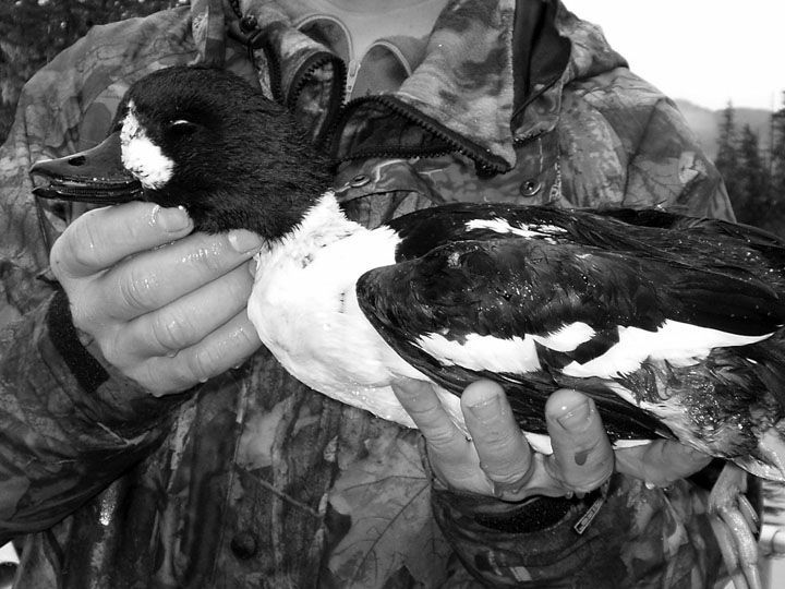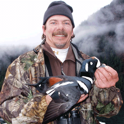 In late September storms in the open Gulf of Alaska bring large rafts of Sea Ducks to the protected waters of Prince William Sound. Harlequin, Barrows Goldeneye, Surf Scoters, White Winged Scoters, Black Scoters, Ole Squaws and Buffleheads can all be encountered in one day of hunting. Thousands of coves, bays and estuaries create a safe winter haven for all these migratory birds.